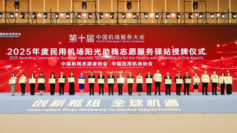 Shanghai Pudong International Airport is named a 2025 Sunshine Volunteer Service Station for the Persons with Disabilities at Civil Airports. [Photo/WeChat account of AVINEX]