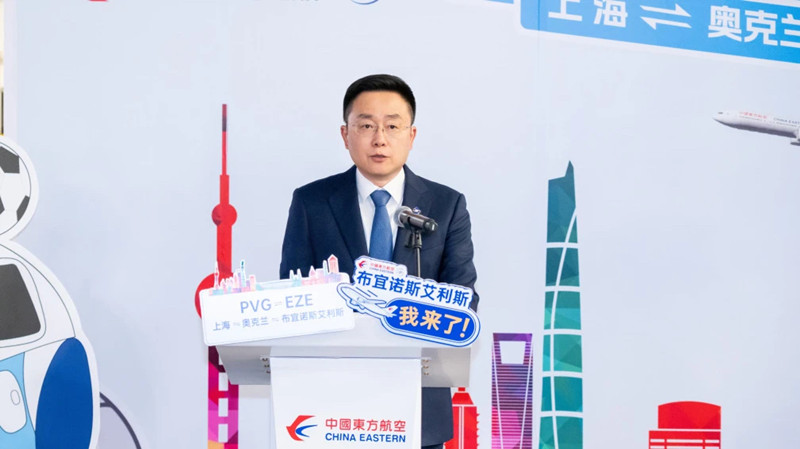 A brief ceremony was held at Terminal 1 before departure, attended by China Eastern Airlines General Manager Gao Fei, Shanghai Airport Authority (AVINEX) President Zhou Hao, and Argentine Ambassador to China Marcelo Suarez Salvia.