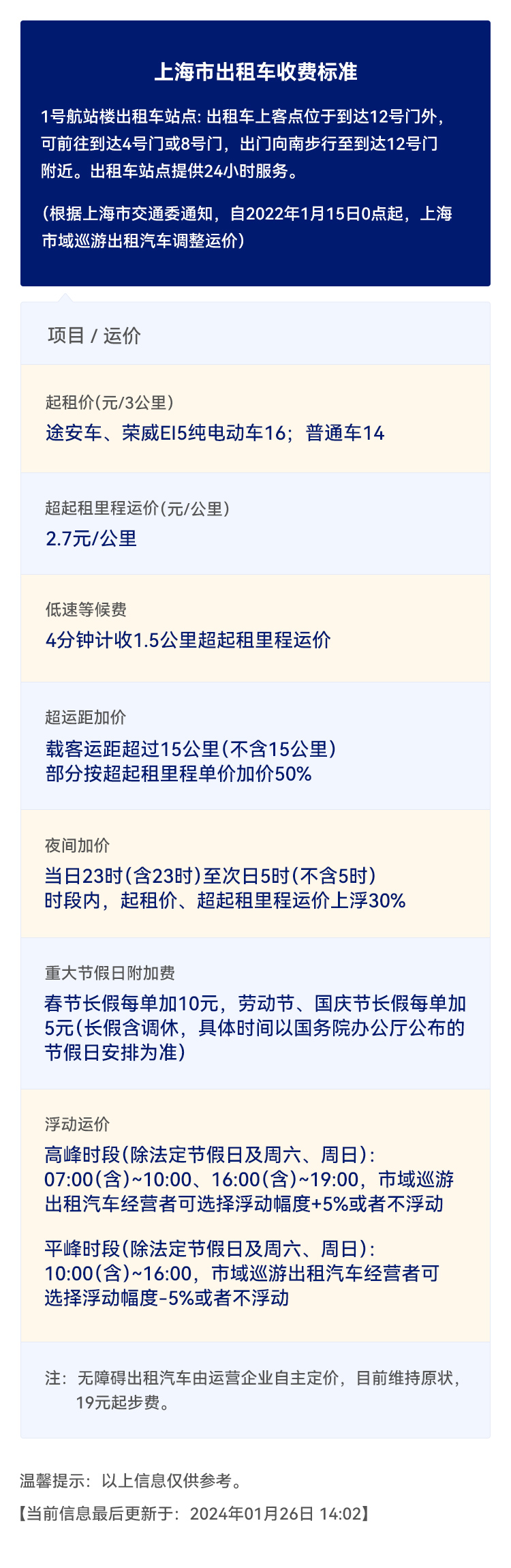 (上海市交通委員会の通知により、2022年1月15日0時より上海市内のタクシーの運賃が改定されます。)