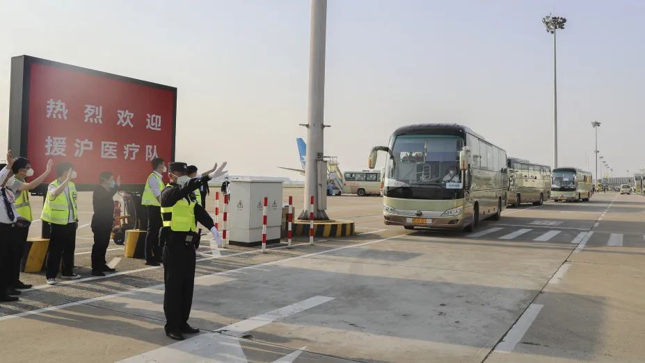 面对密集到达的包机,虹桥机场根据航班时刻合理安排停机位资源,并提前完成了转运大巴的通行规划和协调保障。机场运行指挥中心的值班经理们全员上阵,在第一线协调航班引领和车辆引导等各项工作。由于每班航班都要配备6至8辆大巴,现场就根据实际情况灵活规划停车区域;为避免大巴空座或过于拥挤,机场工作人员就跟上车清点人数协助安排乘位;其他兄弟单位也纷纷出人出力支援航班保障力量,让援沪医疗队下机后能尽快驰援市内各个“战场”。