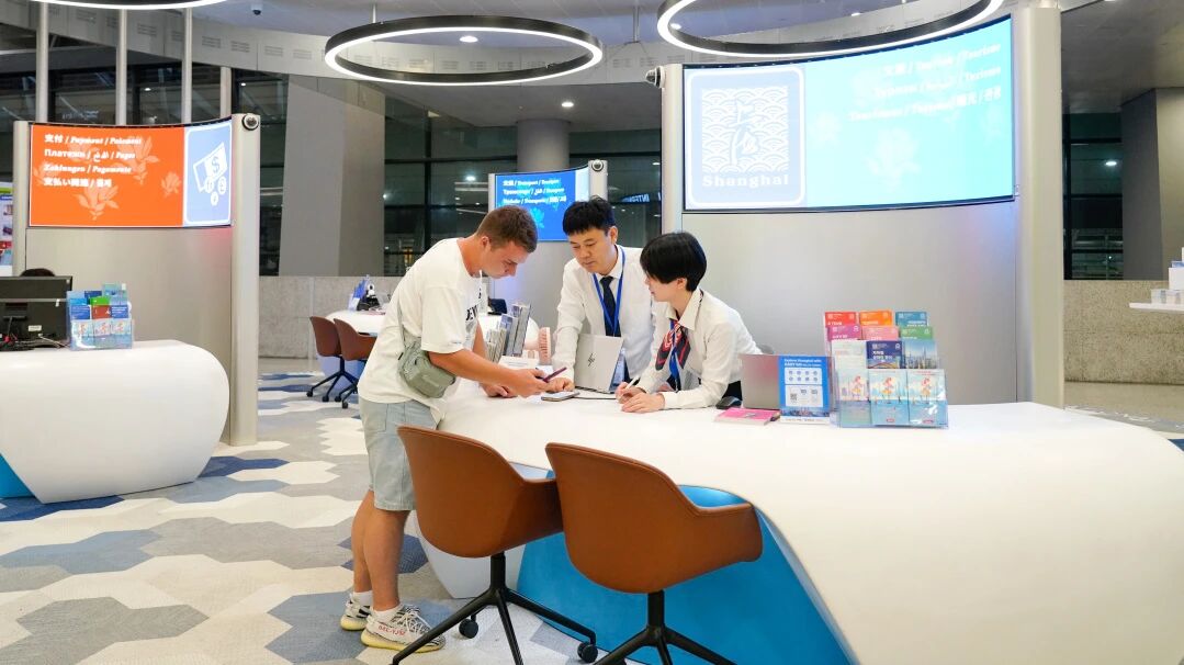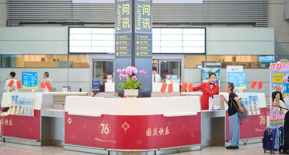 位于两场到达区域的3处外籍人员一站式服务中心为外籍旅客提供支付、文旅、通信、交通一站式解决方案,加强《在华支付指南》宣传推广,帮助他们在上海“吃行游购娱”畅行。机场团员青年组建的外语志愿者服务队于10月1日起在两场国际、港澳台到达公共区域为外籍旅客提供多语种翻译、问询指引、信息查询等服务。